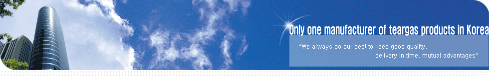 Our company "Korea Defense Industry" was established as a manufacturer of CS tear gas products and defense products in 1999. "Korea Defense Industry" is a only one manufacturer of tear gas products in Korea.